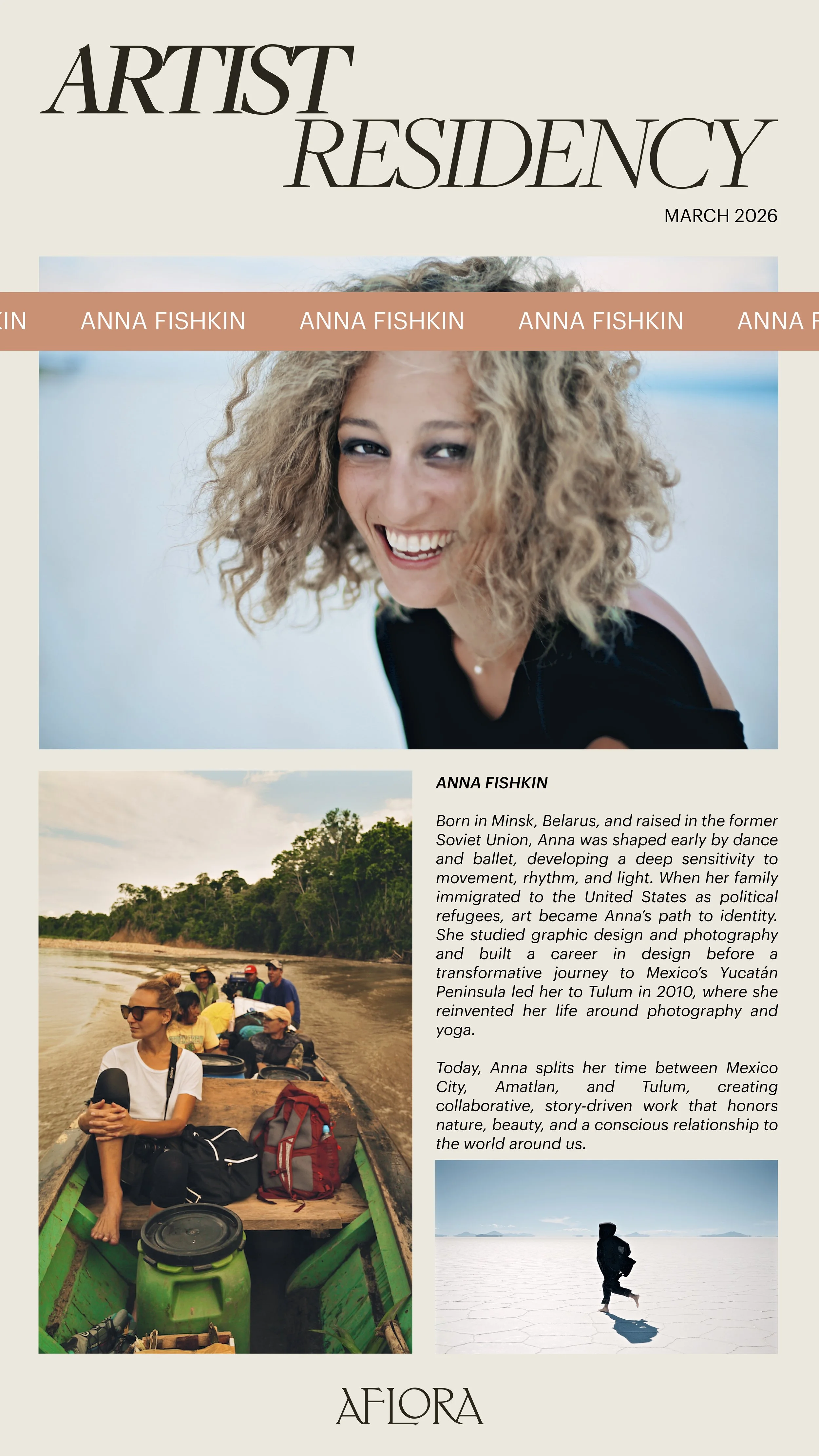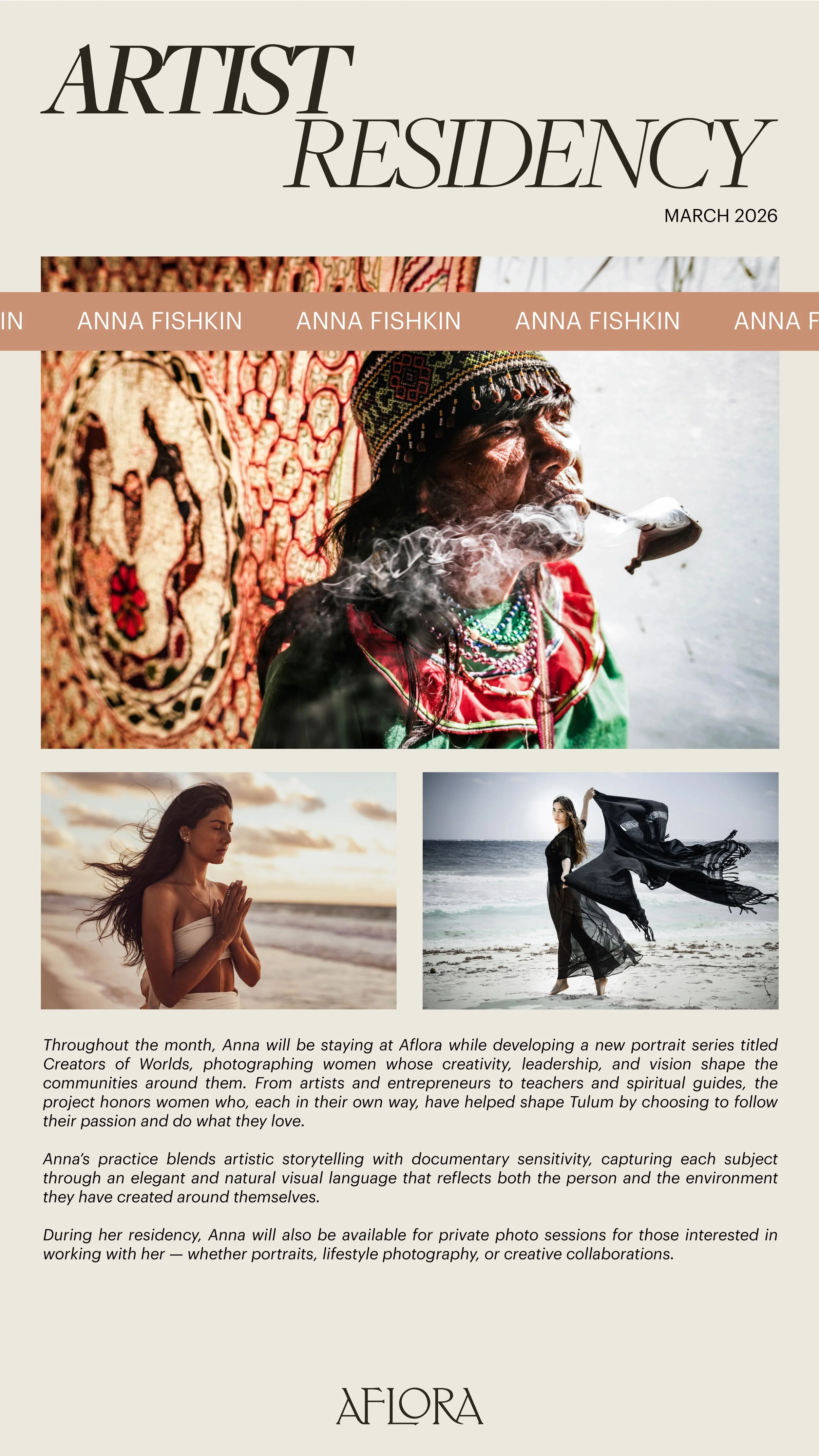 Become an Aflora residence artist ! Become an Aflora residence artist ! In the heart of Tulum's mesmerizing landscape, Aflora's Artist Residency champions a diverse array of artists, providing them with a platform to express their creativity and share their stories. This initiative is a celebration of artistic expression, resonating with the spirit of empowerment.